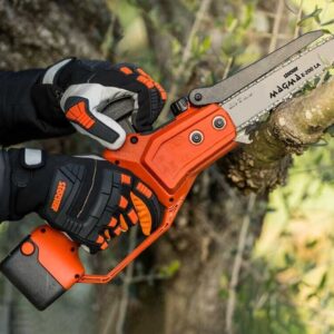 Le batterie permettono di effettuare fino a 80-100 tagli con un diametro di 10 cm, il che rende ideale questo potatore per la cura del verde. Inoltre è presente uno schermo a LED che aiuta a visualizzare lo stato di carica rimanente ed il tempo di lavoro dell’attrezzo finora utilizzato.