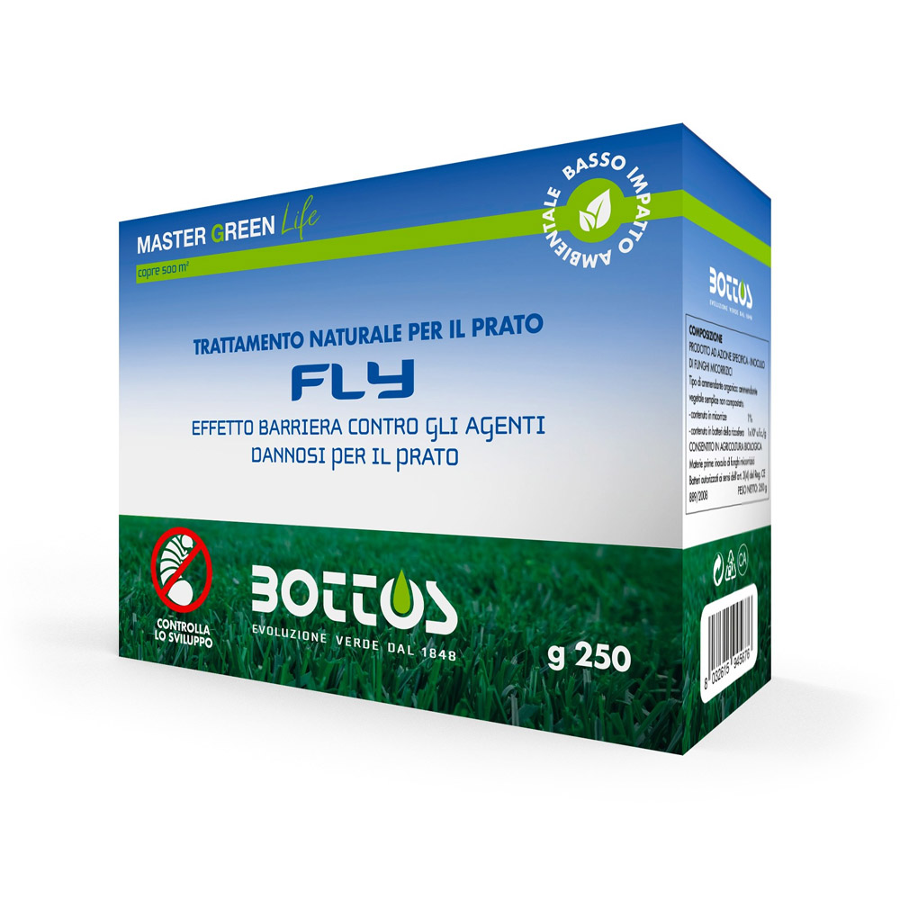 FLY è in grado di controllare le forme giovanili e adulte di insetti che in qualche modo si sviluppano nel terreno come Nottue, Tipule, Aleurodidi, Elateridi, Coleotteri e in parte anche Afidi. La presenza di Batteri utili per la rizosfera permette inoltre di conferire maggiore resistenza al tappeto erboso, grazie allo sviluppo dell’apparato radicale.