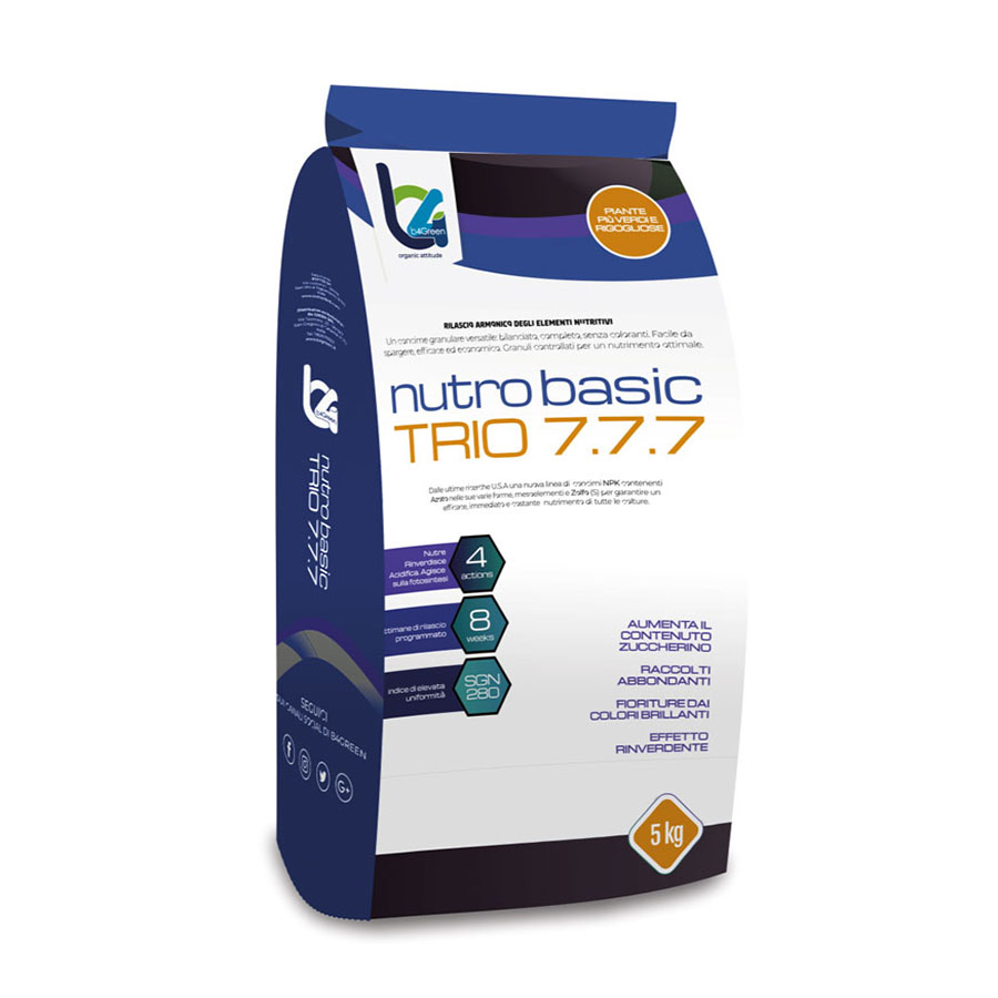 Nutro Basic Trio 7.7.7 è un concime organo-minerale granulare versatile: bilanciato, completo, senza coloranti. Facile da spargere, efficace ed economico. Granuli controllati per un nutrimento ottimale.