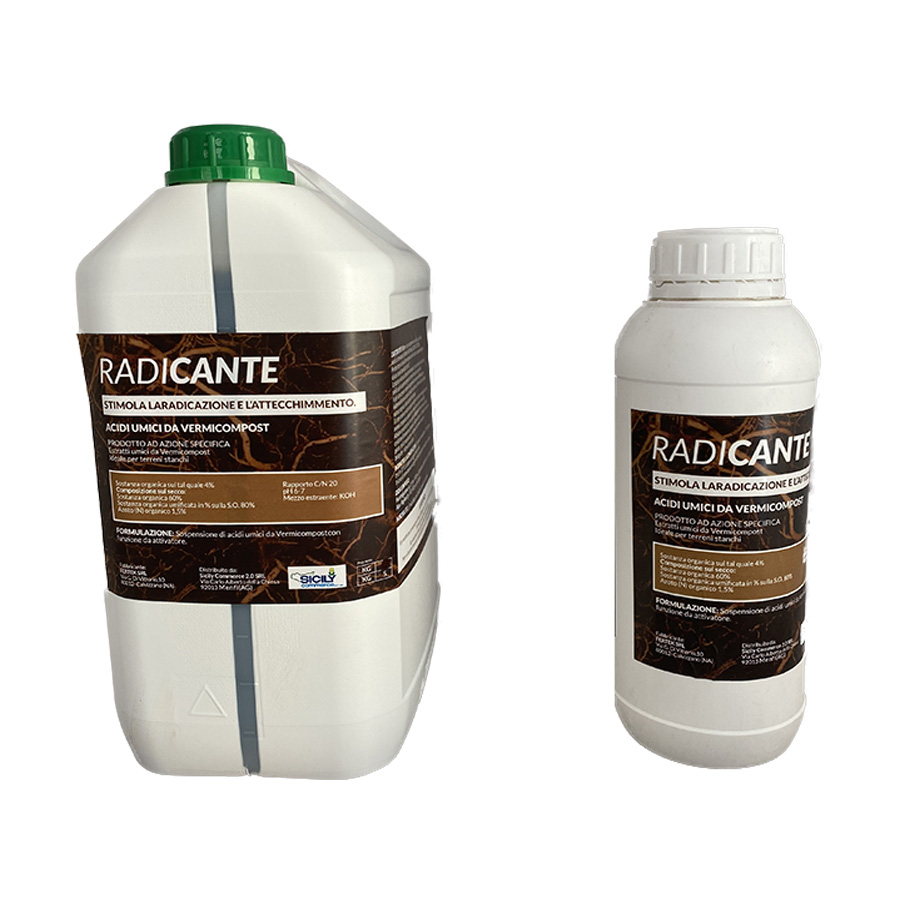 Radicante è una pura sospensione di acidi umici e fulvici ricavati da Vermicompost di lambrico della famiglia EISENIA FOETIDA.