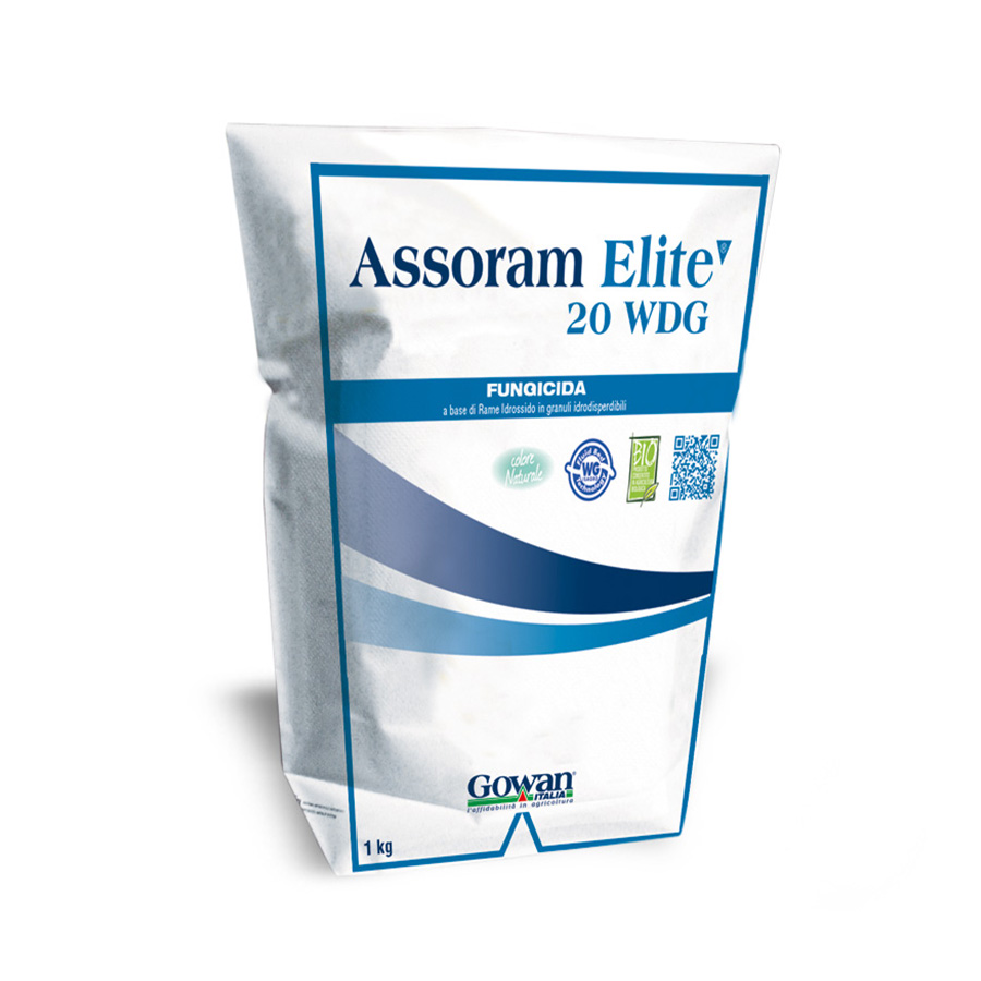 Assoram Elite® 20 WDG è un formulato in microgranuli idrodisperdibili che per il suo originale processo produttivo e l’estrema finezza delle sue particelle è dotato di particolari caratteristiche di adesività e di uniformità ridistributiva sulle superfici fogliari. Tali caratteristiche consentono una maggiore efficacia fungicida e battericida ed una sensibile riduzione delle dosi unitarie di rame con conseguenti vantaggi anche sotto il profilo dell’impatto
