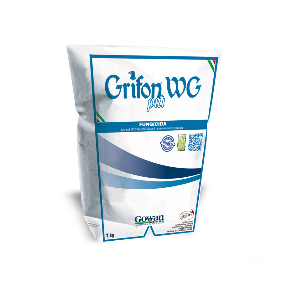 Grifon ® Più è un anticrittogamico in granuli idrodispersibili a base di ossicloruro e idrossido di rame. È efficace nei confronti di numerose malattie fungine e batteriche che colpiscono le colture erbacee ed arboree. La combinazione di due differenti forme rameiche garantisce ottime caratteristiche di efficacia e persistenza. Una scelta vincente combinazione unica, innovativa e brevettata. Eccellente efficacia fungicida con elevata prontezza e persistenza d’azione. Formulazione tecnologica più performante. Maggiore resistenza al dilavamento. Ottima selettività per la pianta. Impiego di basse dosi di Rame metallo per ettaro. Partner ideale per altri fungicidi. Impiegabile anche in Agricoltura Biologica.