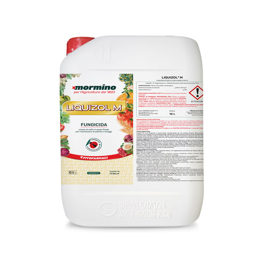 Liquizol ‘M’ è un fungicida, in pasta fluida, caratterizzato da una estrema finezza delle particelle che conferisce al prodotto una elevata adesività, indicato per la lotta contro tutte le forme di Oidio delle piante coltivate, Agitare il contenuto della confezione, versare la dose di Liquizol ‘M’ in acqua, e mescolare sino a completa dispersione.